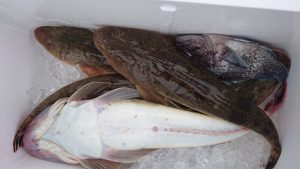 テンヤは、残念ながら真鯛の姿見ず😢途中、真コチのポイントで試し釣りしたところ、コチが良い人3尾✨