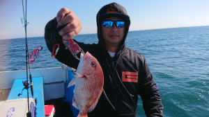 はじめのうちはエサ取りの花鯛ばかりでイマイチでしたが、後半はいい感じに真鯛のアタリが出てきましたね😁