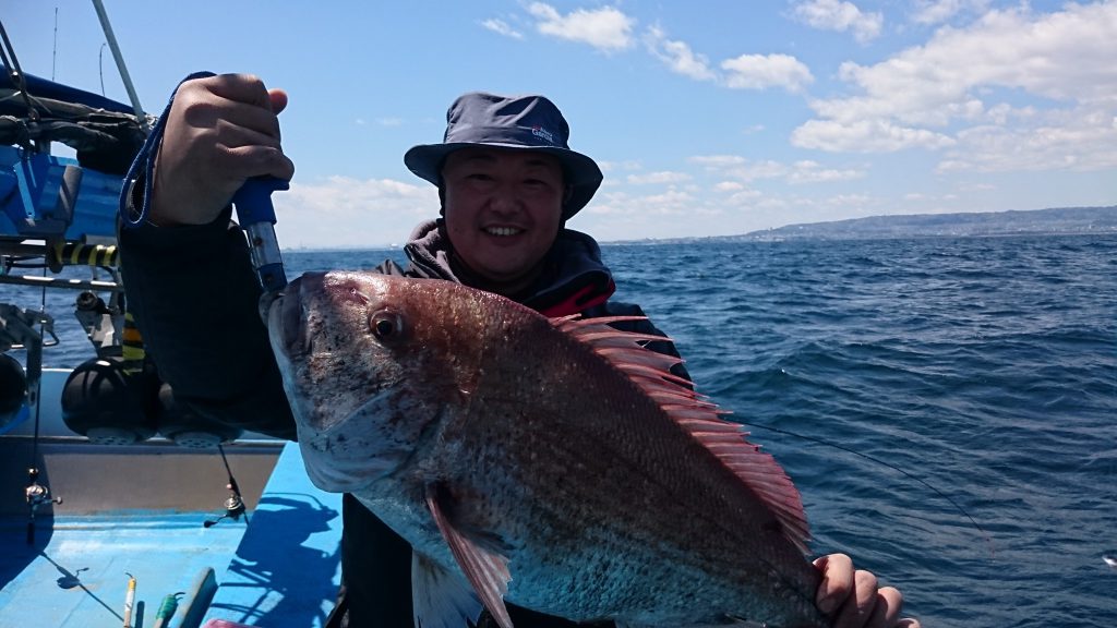 4/23(日)テンヤ真鯛に出船しました🙋 1日を通して、アタリも少なく厳しい1日でした😵 特に朝のうちは、船中フグ2匹のみと、最低の滑り出し😢 その後、一発逆転…