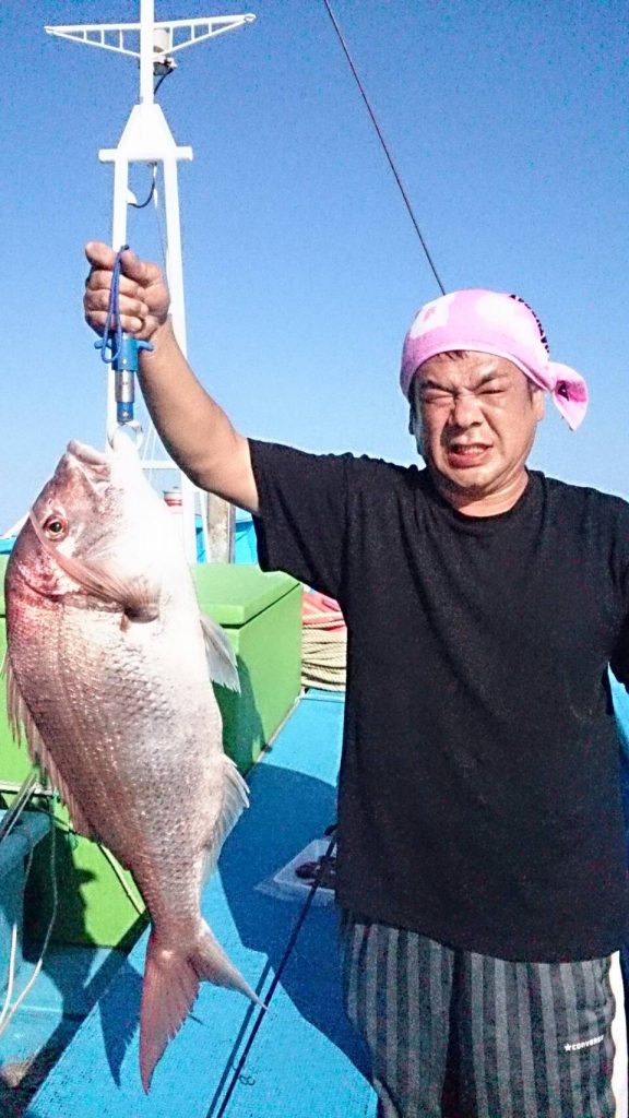 9月14日(水)テンヤ真鯛出船しました👌 潮の流れが変わり、釣りやすい1日でした🎵 朝イチから2.8kg,2.4kgゲットで上々の出足☀ その後は、大物は出ない…