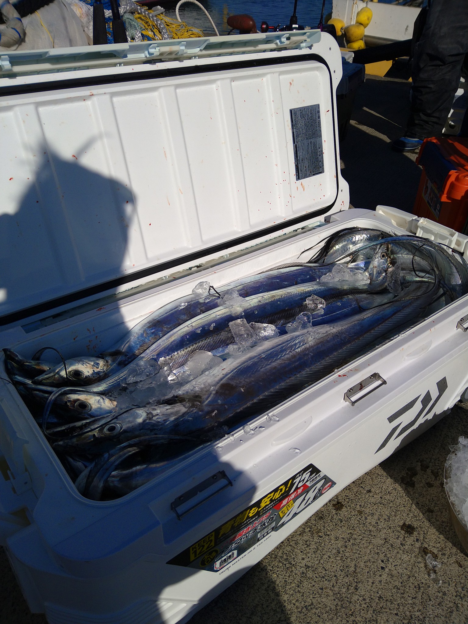 タチウオ爆釣❗ 前半マダイやってましたが、最大0.8kgがポツリポツリ🙄 後半にお試しでタチウオジギングやったら爆釣😲 1時間30分くらいでしたがクーラーいっぱ…