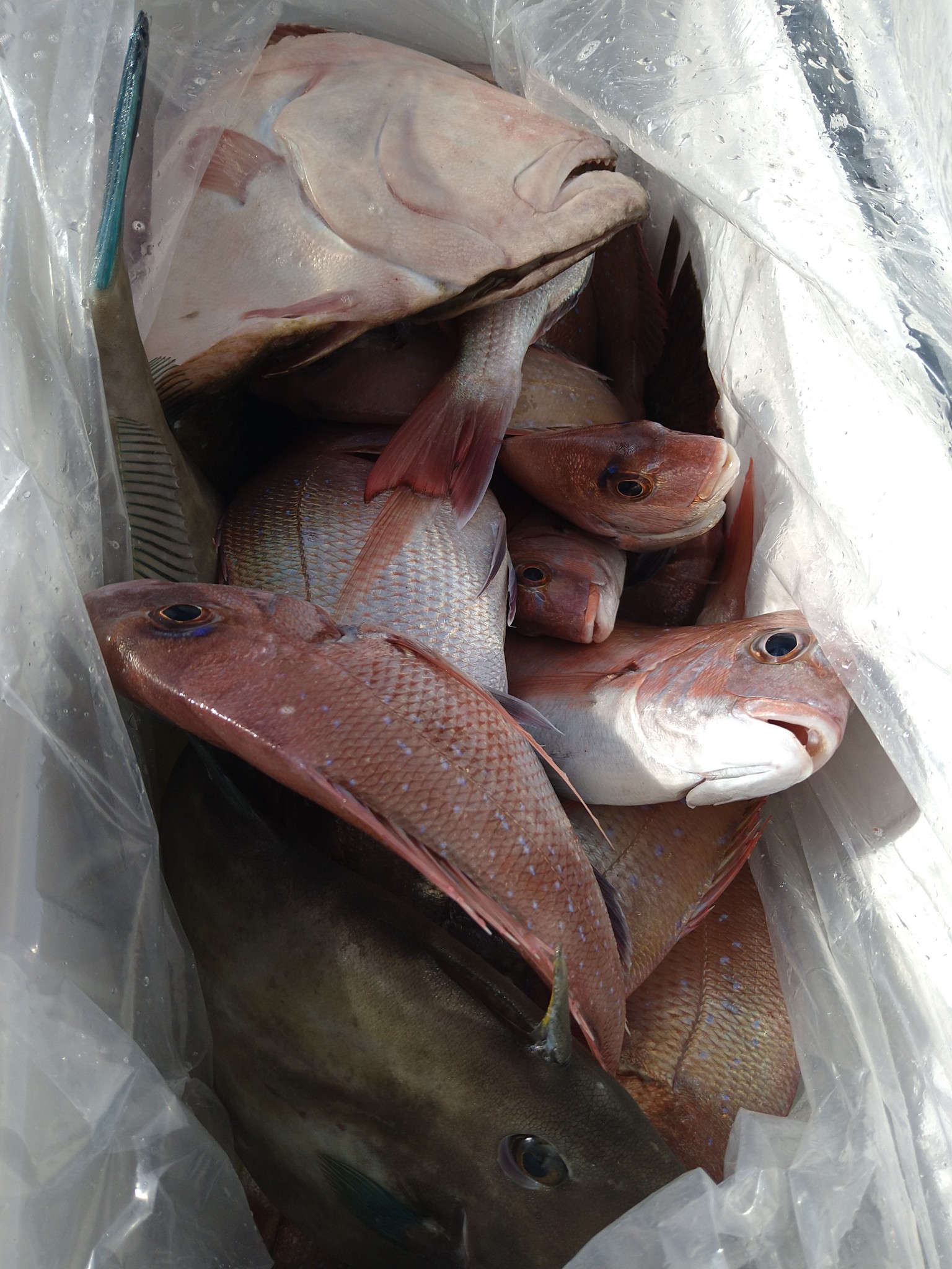 ウネリのせいかちょっと厳しかったですねー😅 トップ7〜8枚⤵️サイズも最大0.7kgでした😰 明日は良いの釣れるように願います🙋