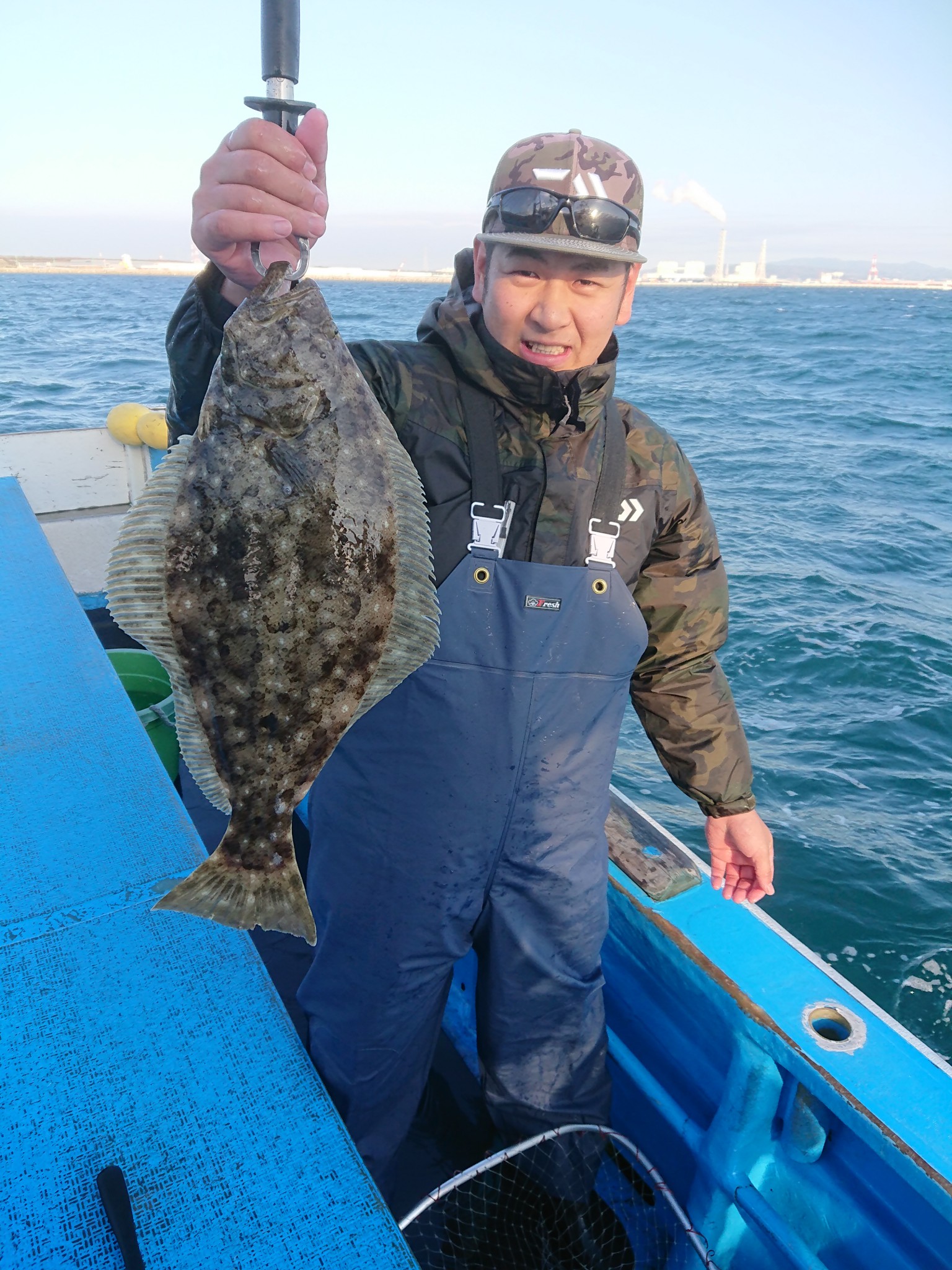 12月2日(月)ヒラメ泳がせで出船しました😃 うねり入って来ちゃいましたね😵 今日は最大2.0kgでした😃アタリも少なく残念🙇